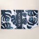 Monstera Leaf Navy & White Tropical Beach Towel