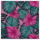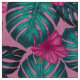 Monstera leaves and Hibiscus Teal and Pink on Pink Fabric