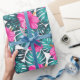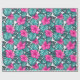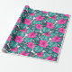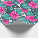 Monstera Leaves and Hibiscus, Teal Pink on White Wrapping Paper