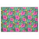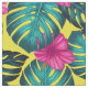 Monstera Leaves and Hibiscus, Teal Pink on Yellow Fabric