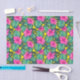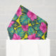 Monstera Leaves and Hibiscus, Teal Pink on Yellow Tissue Paper
