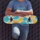 Monstera Leaves in Turquoise, Yellow, and White Skateboard