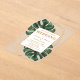 Features a sleek, transparent acrylic base adorned with vibrant Monstera and tropical palm leaf designs. The delicate greenery complements any wedding theme, from beach to garden celebrations.