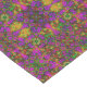 A vibrant kaleidoscope pattern bursts with vivid shades of pink, green, orange, and yellow, creating an intricate symmetrical design. The composition resembles a floral motif intertwined with geometric shapes.