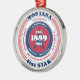 Show your state pride this holiday season with this unique Christmas ornament dedicated to Montana, the 41st state. It has red, white, and blue patriotic colours with a circular typography design on a white background. The text includes facts about the state, such as its name, capital, state abbreviation, region, time zone, geographic coordinates, the year of its statehood, and its resident's name. It's a great gift for those who wish to celebrate their state or for those who are feeling nostalgic about their home state.
