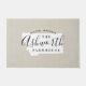 Modern farmhouse personalised doormat with your family name inside your state map. Faux burlap canvas texture background. Click Customise It to add your own text and images and create a unique one of a kind design!