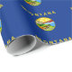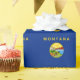 Within the seal, a plough, shovel, and pick rest in a field in front of the Great Falls of the Missouri River. The ribbon contains the state motto, Oro y plata (Spanish for "Gold and silver"). The current flag was adopted in 1905, and the word "Montana" above the seal was added in 1981. In 1985, the flag was again modified to specify the font used in "Montana:" Helvetica Bold. Before it was adopted as a state flag, it was used by Montana troops deploying for the Spanish/American War.