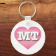 This key chain features a calm, cool, and collected pink heart with a white washed centre containing the bold, white, upper case letters MT, the official abbreviation for Montana, the treasure state.