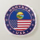 Badge of Montana with flag of Montana and flag of USA colours, rounded shape.