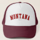 Check out this Montana hat! Are you from Montana? Do you have a friend or family member who loves Montana? If so, this "Banner" hat is exactly the gift that you're looking for! The design features "Montana" in arched red lettering in the classic College font.