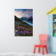 This photo features wildflowers on rocks with Monte Rosa glacier on background, Zermatt, canton of Valais, Switzerland.