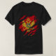 I give wanted to give this a 4 instead of a 5 because these Basic DARK T0shirts run unexpectedly SLIM or Narrow. Which is great if you do not have a potbelly, but I have a paunch. It isn't the shirt's fault that I've got a beer belly. The design and shirt itself is a quality cotton shirt. The color is more of a deep purple, but still a very pretty color. The Basic DARK T-shirts run a bit SLIMMER than the Basic Ts. The neck is a fraction narrower (or seems to be narrower) also. I'm a paunchy middle-aged woman and my neck is 12 inches (31cm) thick and the neckline fell about the same as in the photo of the man, and I had the desire to tug it a bit. So if you're a thick necked man or like loose shirts, be aware these are slimmer shirts. Once I get rid of my lockdown paunch it'll look great. The shirt washed well in cold water with no apparent bleeding. We don't have a dryer, so it hung dry. Did not shrink. Love the colors and the design. The design looks smaller on my shirt than it does on the model on-line. But still, it looks good on the shirt. The printing looks as it does on the model, just the size seems fractionally smaller. Washed garment in cold water, hung dry and design appeared unaffected.