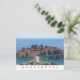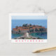 A beautiful panoramic view of Sveti Stefan in Montenegro printed on a postcard.