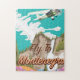 Montenegro cartoon travel poster, visit Montenegro in europe flight travel poster.