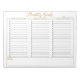 This is a perfect planner for busy families... easy to use and well organized. Each page rips off after use and the new page is ready for the next week. Clear print and personal monogram is fun.