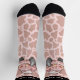 Cartoon car with pink cow pattern. Seamless cow pattern background. Custom top stripe colour. Custom text on each sock.