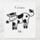 Black and white cow eating flower, to personalise by changing to your name on any background colour