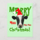 Moo Moo Moo Merry Christmas Cow Postcard. Amaze your friends and family with this cool hilarious Moo Moo Moo saying cow with red Santa hat postcard and with customisable texts "Merry Christmas", "Moo" and "Moo Moo". This cool humourous cow joke Merry Christmas postcard is fully customisable, add your text and image(s)! A great and funny Merry Christmas cow card for friend or family member!