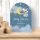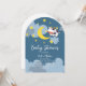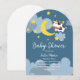 This sweet baby shower design features a night sky, cow and crescent moon. Choose the arched shape for a modern touch.