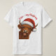 Bring festive cheer to your wardrobe with this adorable Highland cow Christmas T-shirt! Featuring a charming Highland cow peeking from behind a rustic wall, smiling, and playfully saying “Moo-rry Christmas,” this design is perfect for animal lovers and holiday enthusiasts alike. The cozy winter vibe, complete with snow accents and soft lighting, makes it a delightful addition to your holiday celebrations.