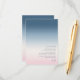 The background for all the pieces in this minimalist wedding set is an eye-catching gradient of colours from prussian blue through soft pink and white. The wedding details card shown here features a sleek, modern layout and contemporary sans serif font to add to it's appeal. Easily add important information for your guests using the provided template. Search ID741 to see the complete set of matching products in Prussian Sky or choose one of the other available gradient combinations to suit your wedding colour palette.