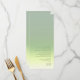 The background for the pieces in this minimalist wedding set is an eye-catching gradient of colors from soft sage green through palest yellow to ivory. The wedding menu card shown here features a sleek, modern layout and contemporary sans serif font to add to it's appeal. Easily add your menu selections, initials and wedding date using the provided template. Search ID741 to see the complete set of matching products in Spring Meadow or choose one of the other available gradient combinations to suit your wedding color palette.