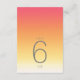 The background for all the pieces in this minimalist wedding set is an eye-catching gradient of colours from deep rose pink through tangerine and yellow to white. The wedding table numbers card shown here features a sleek, modern layout and contemporary sans serif font to add to it's appeal. Easily add table numbers, initials and wedding date using the provided template. Search ID741 to see the complete set of matching products in Hot Summer or choose one of the other available gradient combinations to suit your wedding colour palette.