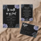 A bold and sophisticated Dart Board featuring dramatic dusty blue and grey floral illustrations against a stark black background. The crisp white typography and classic layout set an elegant, moody tone. Perfect for a formal evening or a sophisticated wedding.