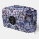 A bold and sophisticated Dopp Kit Toiletry Bag featuring dramatic dusty blue and grey floral illustrations against a stark black background. The crisp white typography and classic layout set an elegant, moody tone. Perfect for a formal evening or a sophisticated wedding.
