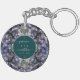 A bold and sophisticated Acrylic Keychain featuring dramatic dusty blue and grey floral illustrations against a stark black background. The crisp white typography and classic layout set an elegant, moody tone. Perfect for a formal evening or a sophisticated wedding.