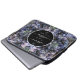 A bold and sophisticated laptop sleeve featuring dramatic dusty blue and grey floral illustrations against a stark black background. The crisp white typography and classic layout set an elegant, moody tone. Perfect for a formal evening or a sophisticated wedding.