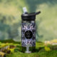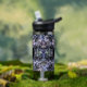 Moody Black Floral Classic Couple Names Wedding Water Bottle