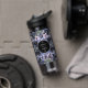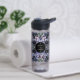 A bold and sophisticated Water Bottle featuring dramatic dusty blue and grey floral illustrations against a stark black background. The crisp white typography and classic layout set an elegant, moody tone. Perfect for a formal evening or a sophisticated wedding.