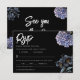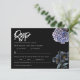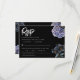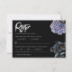 A bold and sophisticated RSVP Card featuring dramatic dusty blue and grey floral illustrations against a stark black background. The crisp white typography and classic layout set an elegant, moody tone. Perfect for a formal evening or a sophisticated wedding.