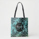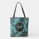 Moody Black Floral on Turquoise Monogram Tote Bag