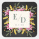 Moody Blush Lily Black Floral Monogram Wedding Square Sticker
