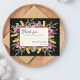 Express your gratitude in timeless style with this moody blush lily wedding thank you card, featuring romantic pink lilies, golden botanical accents, and a dramatic black background for a refined and elegant look.