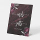 Moody Burgundy Silver Floral Wedding Cards Gifts Pedestal Sign