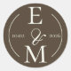 Moody Coffee Ivory Monogram Date Wedding Classic Round Sticker