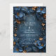 An enchanting deep-navy wedding design wrapped in glowing copper florals and delicate botanical detailing. This immersive, moody palette creates a romantic twilight atmosphere, perfect for elegant evening weddings or couples who love rich, dramatic aesthetics. The ornate frame draws the eye to your names and details, giving the entire piece a luxurious, storybook feel. A sophisticated choice for modern romantics who want their celebration to feel timeless and striking.
