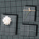 This highly sophisticated and moody wrapping paper features a classic tartan plaid pattern in a striking, dark palette. The design is dominated by deep charcoal and graphite grey tones, accented by subtle, yet beautiful, fine lines of muted aqua or light teal. This upscale, gender-neutral design is the perfect choice for an elegant winter or holiday gift, making it especially popular as men's gift wrap. Choose this dark, modern plaid for a refined and memorable presentation.