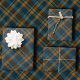 This sophisticated wrapping paper features a dark and moody diagonal tartan plaid in rich, earthy colors. The pattern expertly combines deep navy blue and dark brown/olive tones, strikingly crossed by lines of warm copper and burnt orange. This design offers a rugged yet elegant, gender-neutral look, making it perfect for autumnal celebrations, Father's Day, or upscale men's gifts. Choose this adventurous, stylish plaid for a truly memorable and masculine presentation.