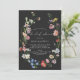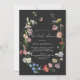 A striking moody floral bridal shower invitation featuring a watercolor horse shoe wreath of Dutch flowers on a black background. "bridal shower" is in white modern calligraphy style font.