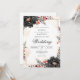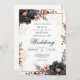 Dramatic floral elements in deep charcoal and vibrant coral create a striking contrast against a pale, textured background. This design evokes a sense of sophisticated drama and natural beauty.