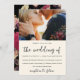 Beautiful and elegant moody floral photo wedding invitation. This elegant invitation is a chic way to let invited guests know of your upcoming marriage ceremony. Pretty "the wedding of" calligraphy script sits on a dramatic dark black background with the couple's photo, and a dramatic botanical flower pattern covers the back of the card.