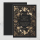 These modern classic, magical forest wedding invitations are perfect for those dreaming of an enchanted forest celebration, featuring a rich black background with an intricate, elegant botanical frame with a faux-gold sheen (the gold is a digital effect!) and a vintage patina, that captures the essence of a fairy tale wedding. These moody, dark forest invites blend deep greens with rich black, creating a whimsical yet mysterious atmosphere. Ideal for gothic, forest-themed, or fantasy weddings, each enchanted invitation evokes the allure of a dark forest wedding, with mystical woodland elements, ensuring your special day is unforgettable from the moment your guests receive their invite.