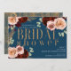 Moody Glam Blue Gold Pink Roses Bridal Shower Invitation