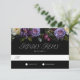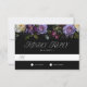 Elegant moody floral wedding RSVP card featuring a bouquet of purple and ivory flowers, lush green foliage, and dark berries at the top of the design. "Kindly Reply" is displayed in elegant, modern typography. Personalise the gothic wedding RSVP enclosure card with your desired response date. The unique RSVP card reverses to display a matching floral pattern. The design coordinates with our Moody Gothic Floral wedding collection.