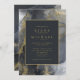 Your dreams are finally coming true and this flowing, alcohol ink abstract design sets the perfect tone for the fabulous wedding you always imagined. In shades from charcoal to black accented with glittering gold, the wedding invitation shown here provides a template to easily add your own names, wedding date and event details. Search ID988 to see other pieces in this coordinated wedding set.
