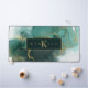 This flowing, alcohol ink abstract design sets the perfect tone for any business professional. In shades from sea glass green to dark emerald, accented with glittering gold, the desk mat shown here, provides a template to easily add your monogram and name. Search Id988 to see other products with this eye-catching design, including matching business cards.
